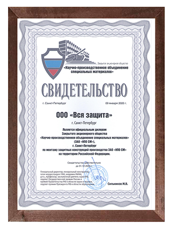 ООО «ВСЯ ЗАЩИТА» - официальный дилер ЗАО «НПО СПЕЦИАЛЬНЫЕ МАТЕРИАЛЫ»